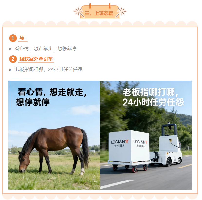 马,代表的是人类文明的记忆,是古典的浪漫,是生命的温度。它陪着我们从农业社会走到了工业时代,是当之无愧的“功勋元老”。但是,时代变了!在这个既要降本增效,又要智能升级的2026年,干活这件事,我们真的需要一点“冷血”的效率。毕竟,谁不喜欢一个不用哄、不挑食、24小时随叫随到、干起活来还贼靠谱的硬核队友呢?