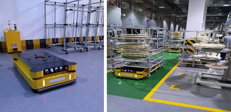 基于丰富的项目经验,结合现场场景需求,引入包括2台L06 AGV车、17台iPad、70台物料车、1套充电桩、1套调度系统和1套WMS系统的完整解决方案,打造了模板生产全自动车间,由人工生产阶梯式跨越实现自动化、信息化。